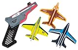 Point, Snap, Soar! Fly miniature jet style planes safely indoors and outdoors in just a snap! Load your plane on to the handheld charger and simply snap your wrist for jet style free flying fun as far as 30 feet! Turn launcher switch on and activate simulated jet sounds to add special effects. Adjustable flight surfaces allow you to perform amazing loop and stunts easily. Includes 1 Launcher and 3 Jet style planes.... >> Click here for More Details