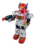 This cool Galactic Warrior Space Robot stands 13" tall. He is in the thick of combat and marches into battle with his trusted blaster and sword. Combat sounds fill the background as he shouts "Fire, Fire".